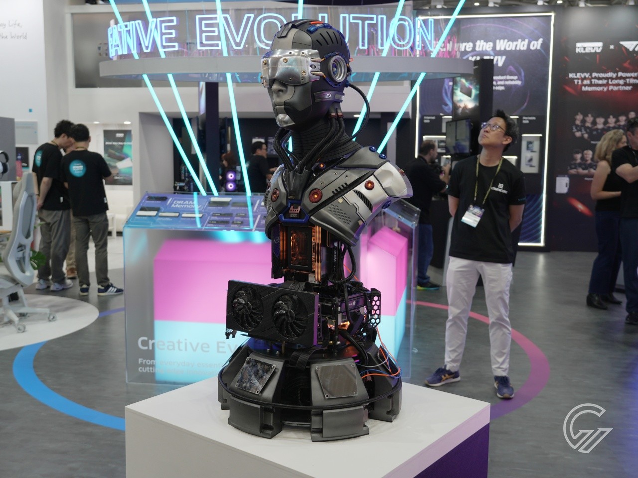 Yang paling menarik perhatian saya dan juga pengunjung booth KLEVV di Computex 2025 adalah sebuah PC berbentuk setengah badan robot yang tampak seperti keluar dari dunia fiksi ilmiah.