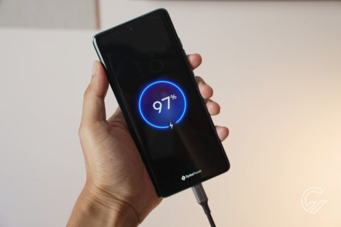 Meski kapasitas baterainya cukup besar, proses pengisian dayanya tergolong cepat berkat dukungan 68W fast charging. Dengan charger bawaan, hanya dibutuhkan waktu sekitar 59 menit untuk mengisi daya dari 10% hingga penuh.